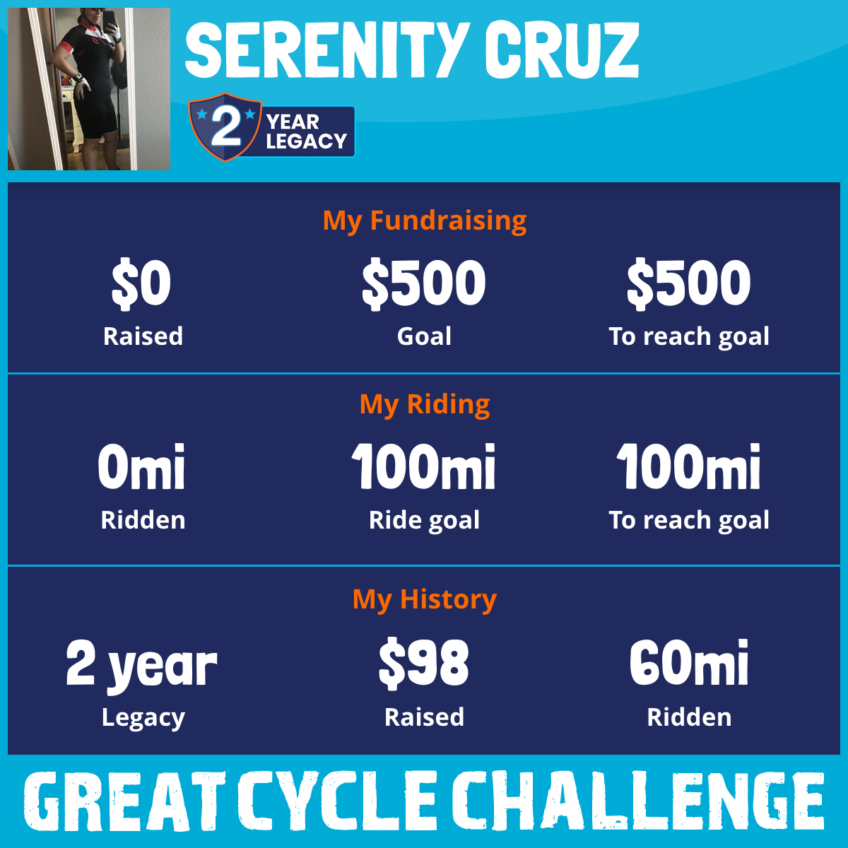 60 mi Ridden$98 Raised2021