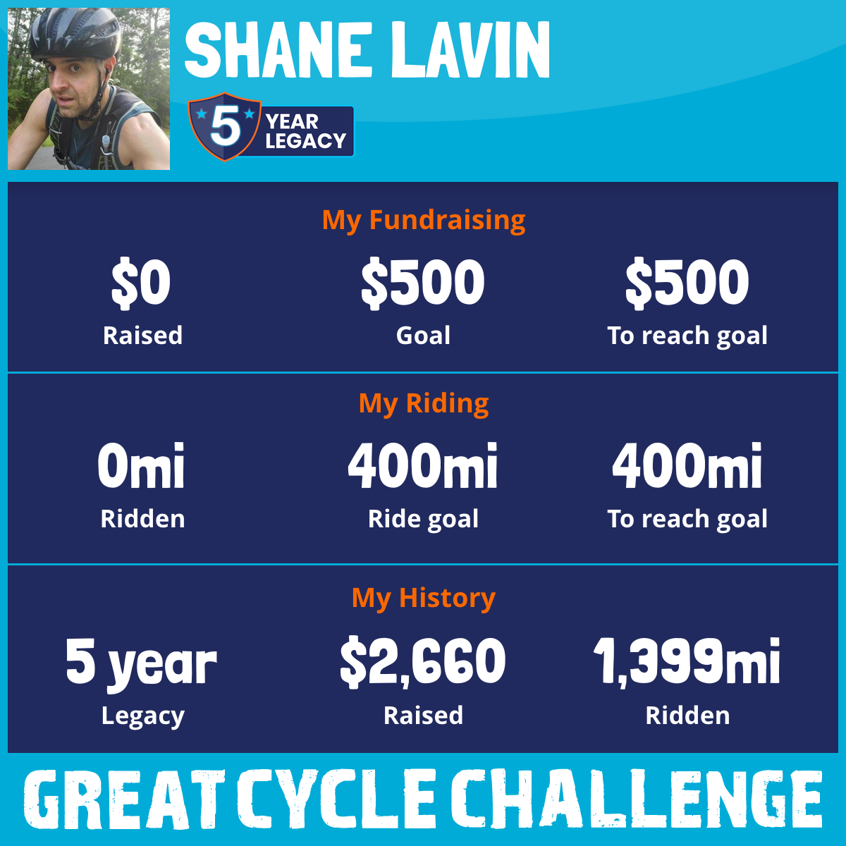 I came across The Great Cycle Challenge in 2021 and am in my fifth year of the challenge. I will be riding this September to fight kids' cancer! My goal is to pedal 500 miles throughout the month.