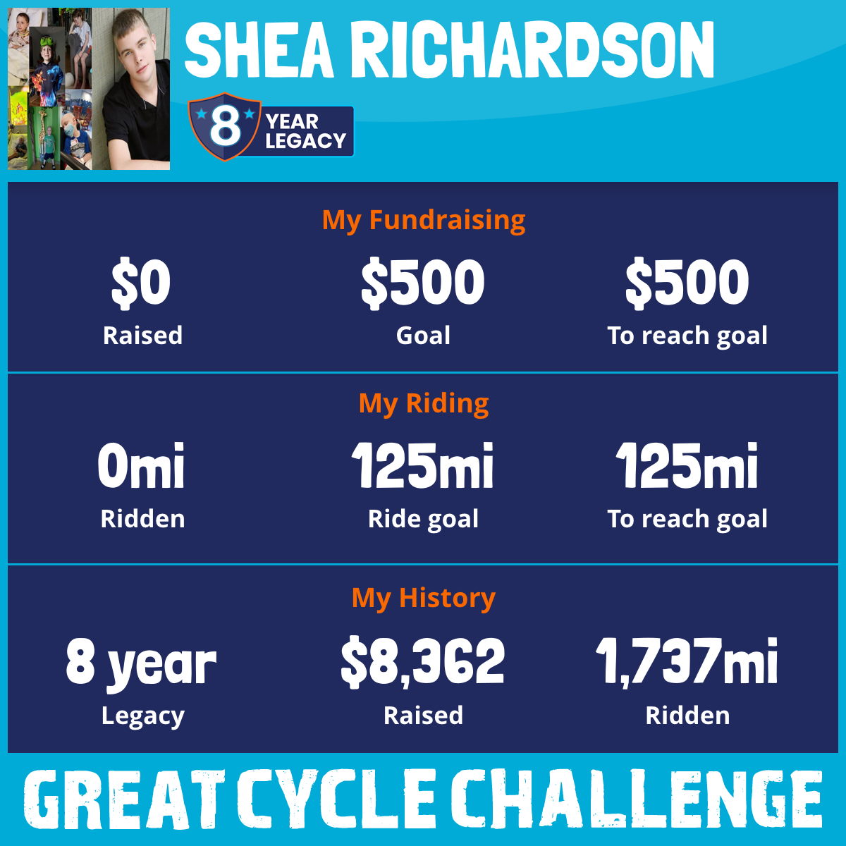 This is my seventh annual tribute to David and my fourth to Archer. David Pearson was a true joyful spirit. He loved life and all those in it. Not only was he genuinely kind and loving, but he also took time to ensure all of those around him felt loved and included always. He had the gift of gentleness and compassion. The world lost the presence of David all too soon due to GBM (Glioblastoma Multiforme). Archer is the 10 year old son of a dear friend who was diagnosed with Leukemia in May 2020. Archer, you are a beautiful, strong fighter of a terrible disease. My hope is that by raising money through activities such as the Challenge, we can continue to improve the treatment options available to you so that you can continue to fight...to grow... and to heal into the young man and adult you are meant to be. My heart and love is with you, Jillian, Brad, and Lola as you continue in your battle. I love you little buddy.