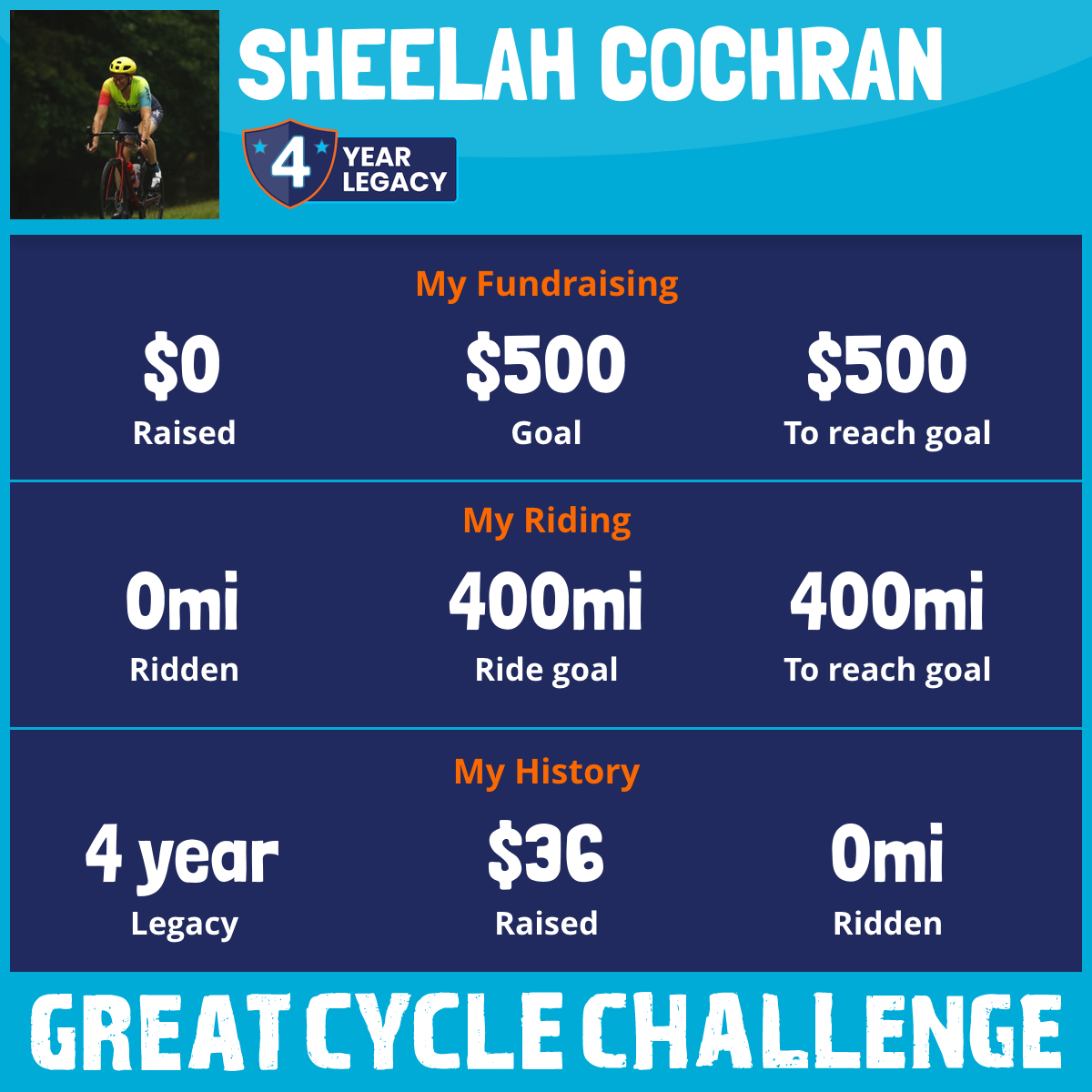 I am riding 400 mi to fight kids' cancer and save little lives. Please sponsor me to support my challenge!