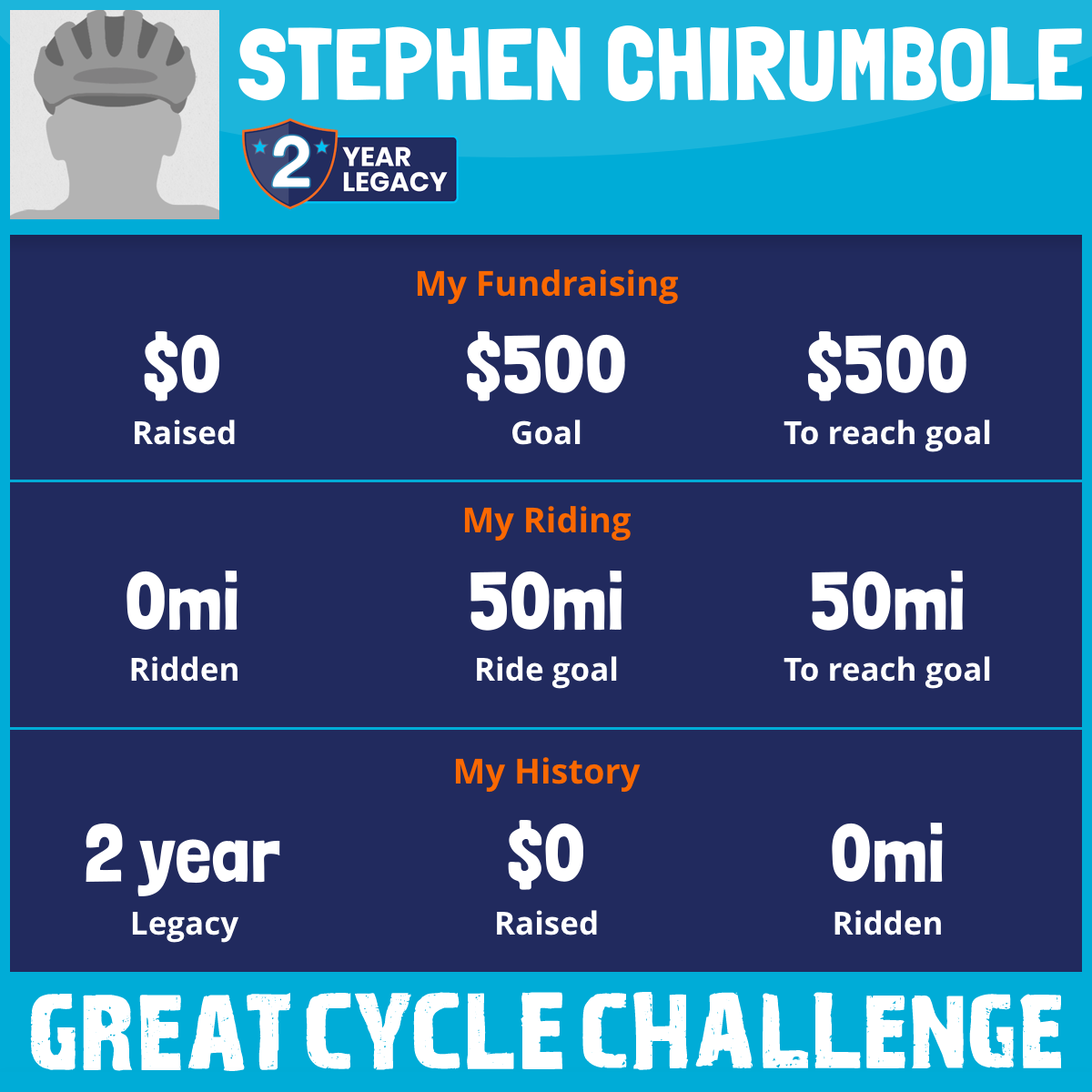 I am riding 50 mi in memory of my friend, Stephen. Please sponsor me and support my challenge to fight kids' cancer and save little lives.
