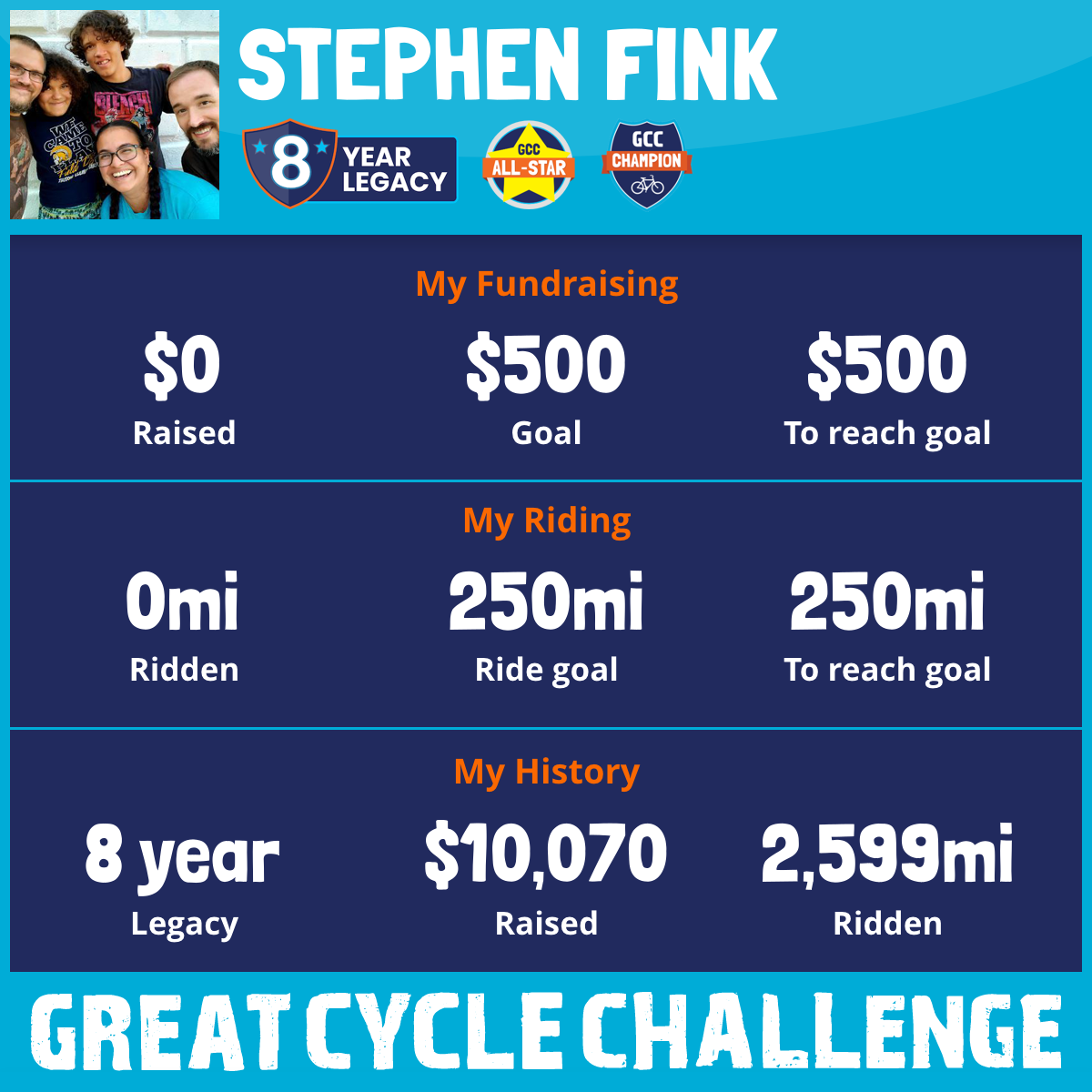 256 mi Ridden$1,549 Raised2023