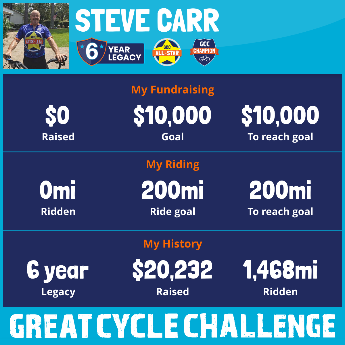 This September, it will be year 5 in taking part in the Great Cycle Challenge to fight kids' cancer! Many of you were key to my 2020, 2021, 2022, 2023 and 2024 goals. Thank you all very, very much!! There is still much work to be done. We have raised over $27,000 because of your generosity!