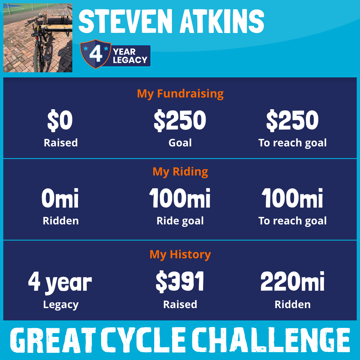 I've Ridden 0.0 mi ? My goal is 100 mi