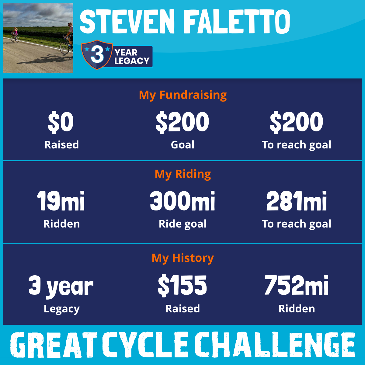 I am riding 300 mi to fight kids' cancer and save little lives. Please sponsor me to support my challenge!