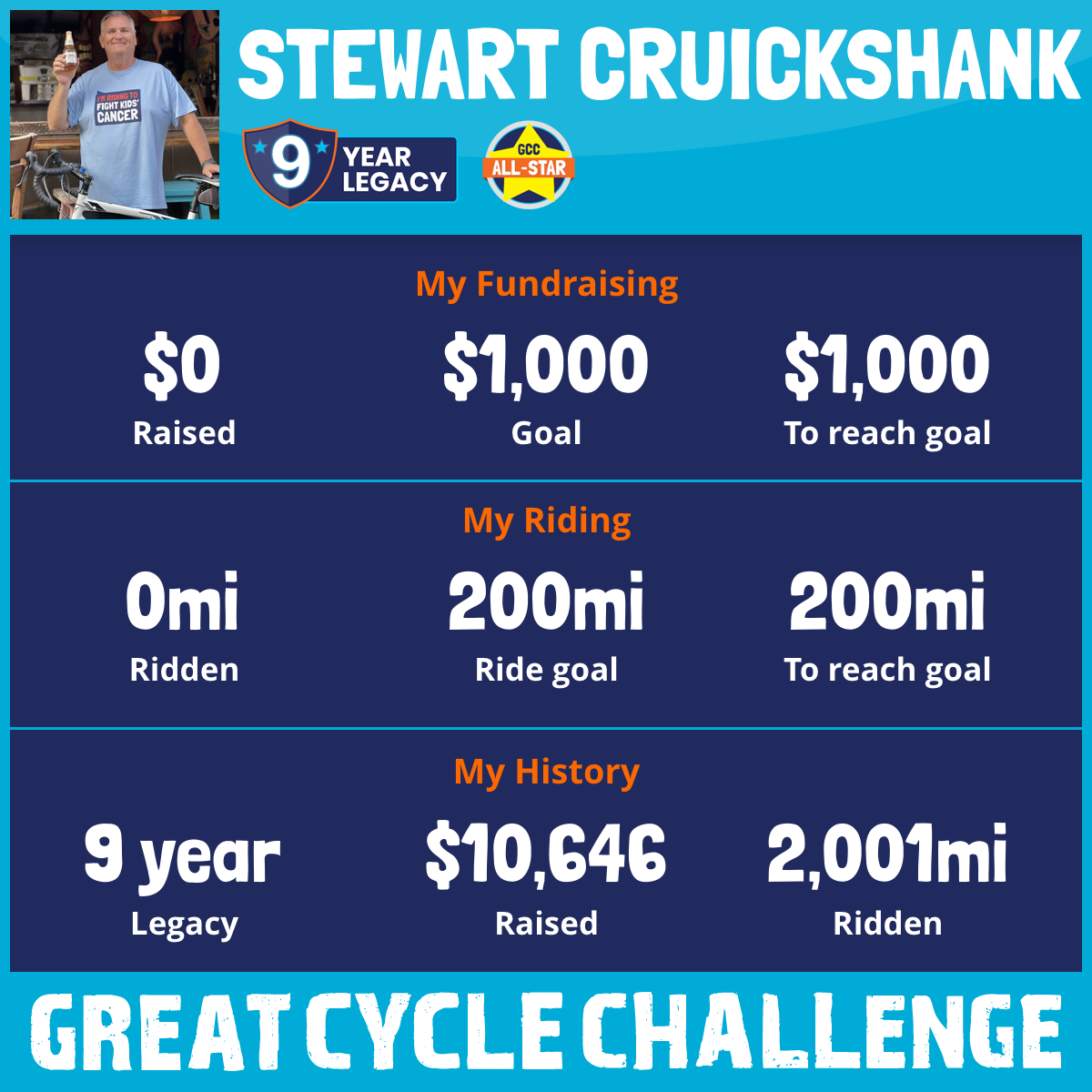 Because of you, I am close to raising $11,000 and over 2,000 miles. This September will be a little more challenging for me. I had foot surgery and I will gone for a big part of September but none of that compares to what the kids go through every day, so I will never complain.