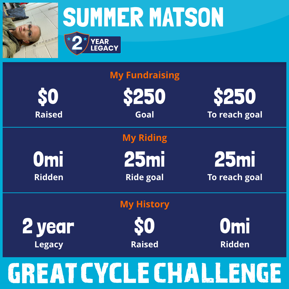 I am riding 25 mi to fight kids' cancer and save little lives. Please sponsor me to support my challenge!