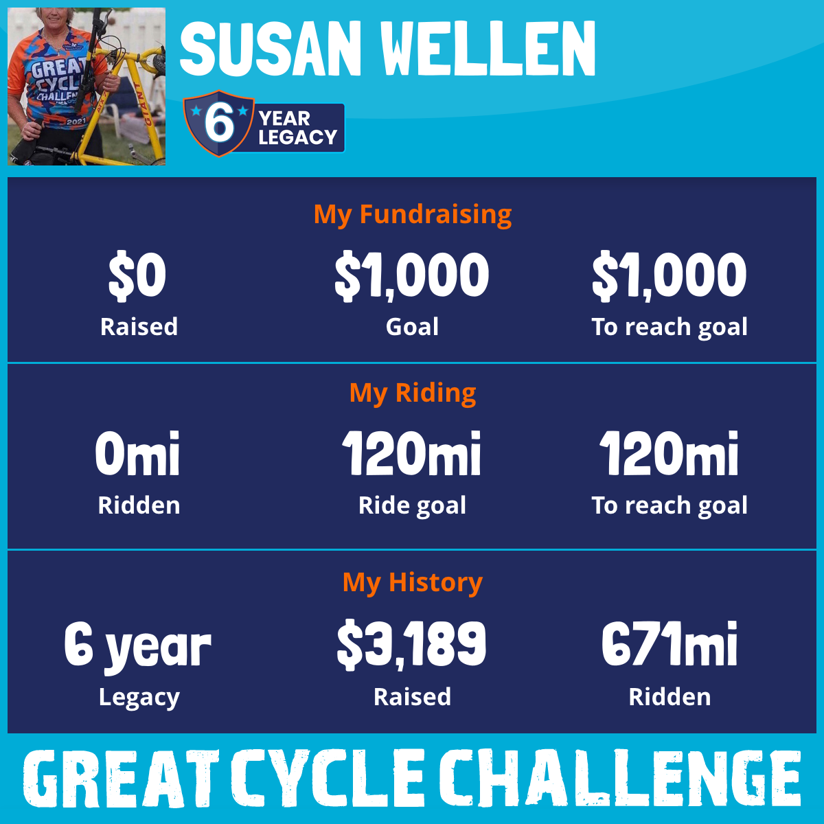 This will be my 6th year participating in the great cycle challenge for kids cancer. Unfortunately I lost a good friend Linda k Pope and will be riding in her memory again. Also riding for my parents who both died from Cancer, my friend Kenny Lankford who also died from Cancer... Riding for all the kids who are fighting and those who lost their lives to cancer. I would like to reach my goal of $1000+ this year.