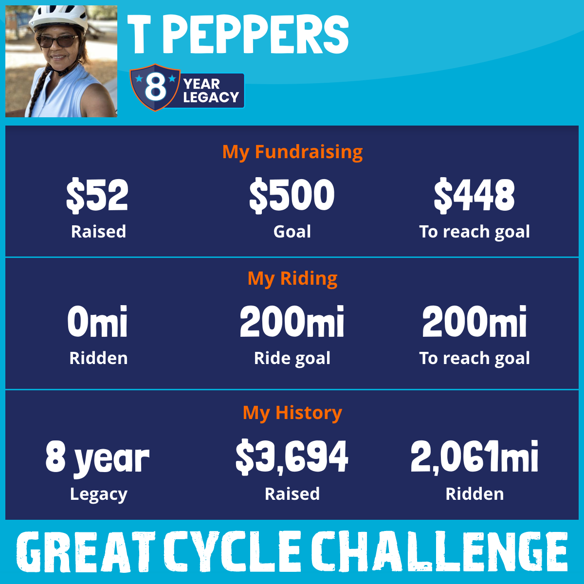 I am riding 300 mi for Pep. Please sponsor me and support my challenge to fight kids' cancer and save little lives.