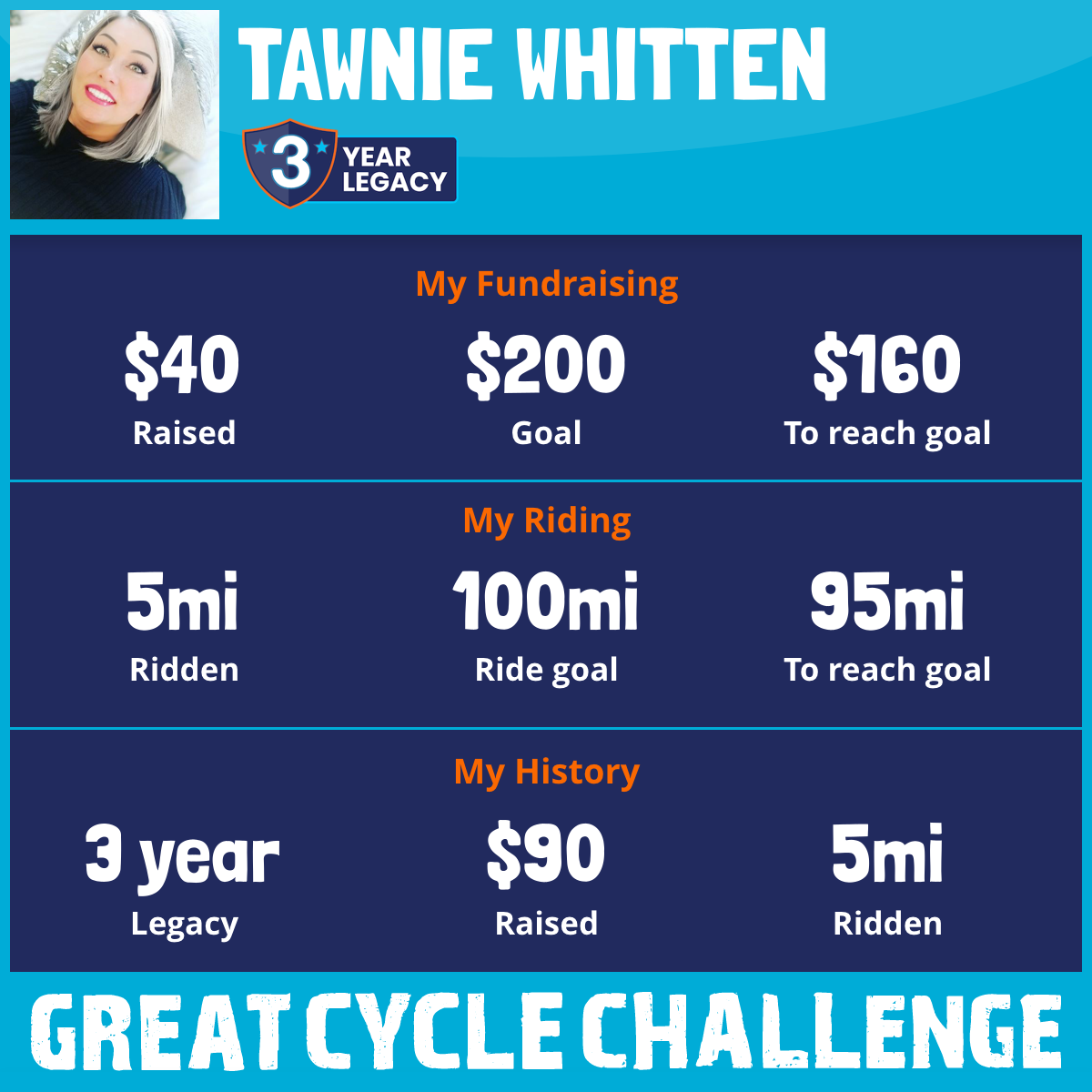 I am riding 100 mi for so many loved ones I know battling cancer. Please sponsor me and support my challenge to fight kids' cancer and save little lives.
