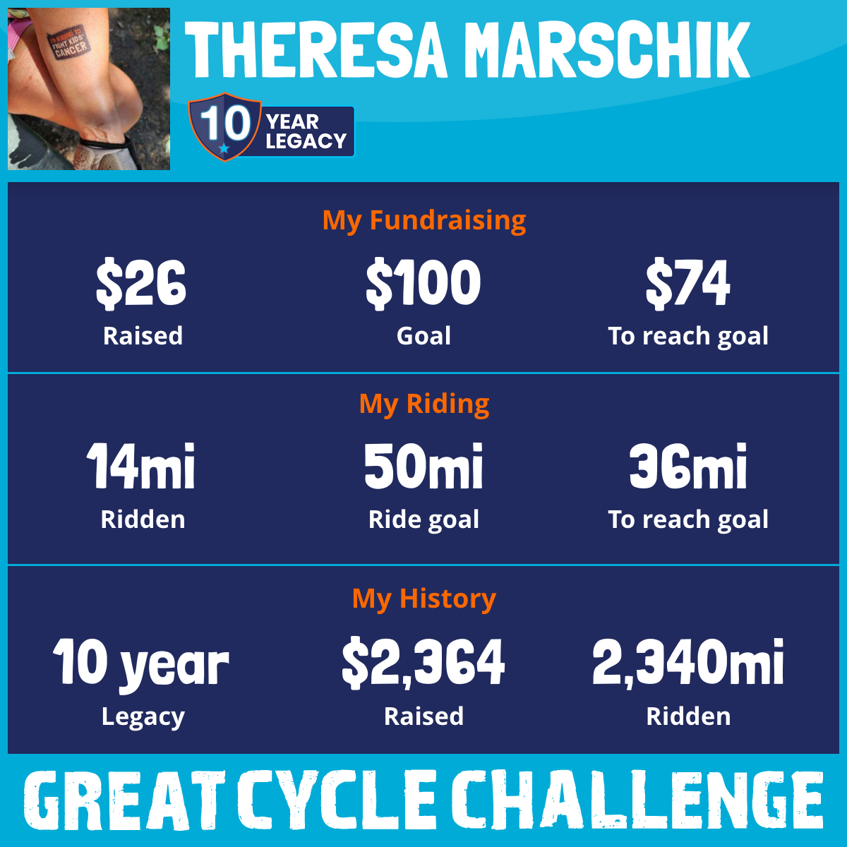 I am riding 50 mi in memory of In Memory of Emmy. Please sponsor me and support my challenge to fight kids' cancer and save little lives.