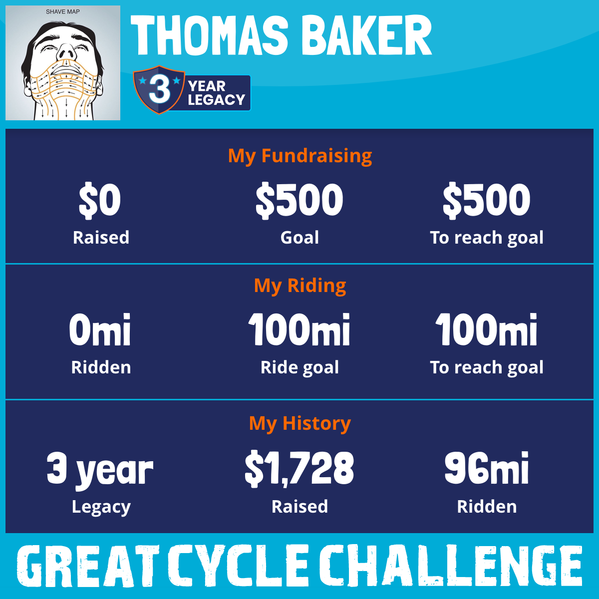 I am riding 100 mi for John Baker. Please sponsor me and support my challenge to fight kids' cancer and save little lives.