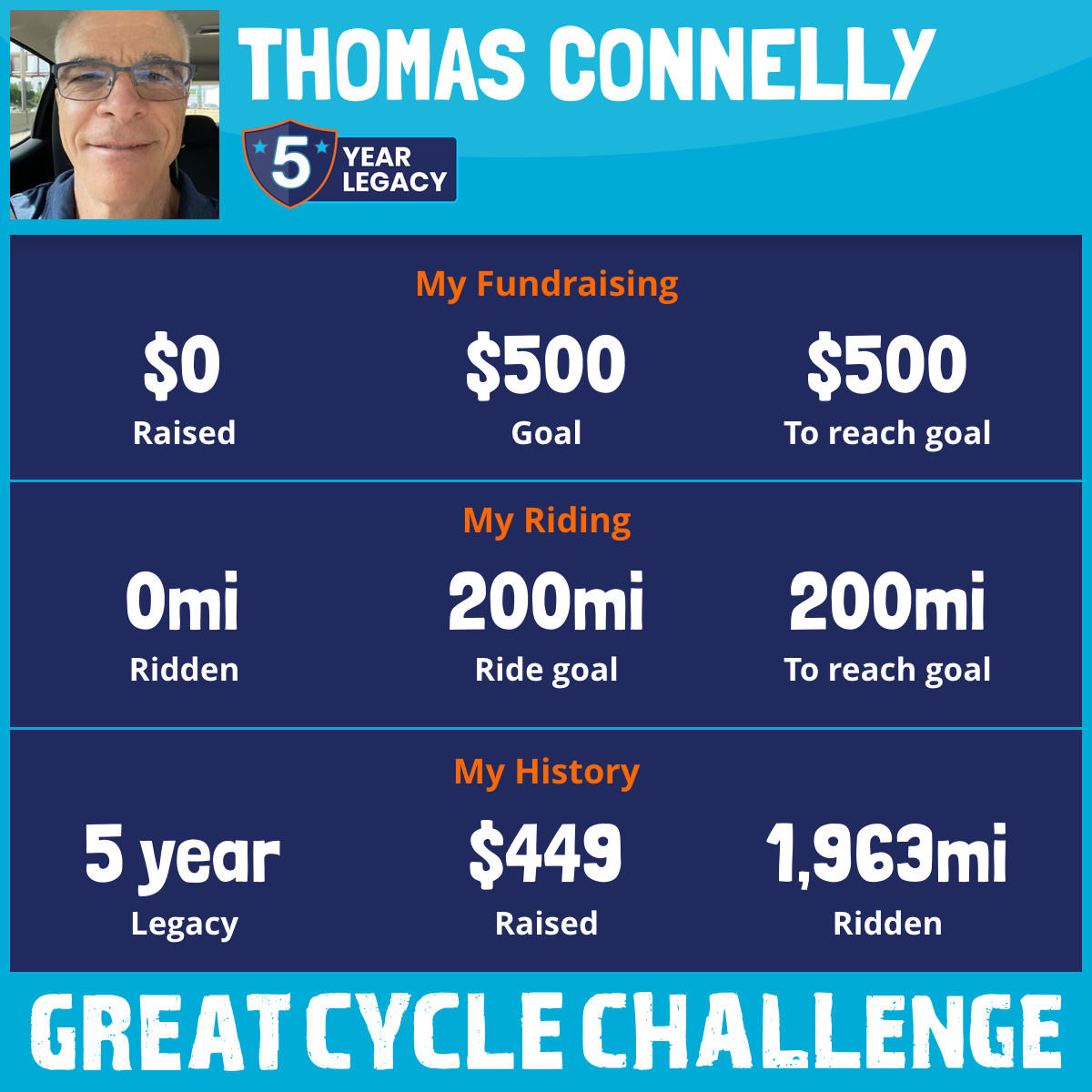 I am riding 200 mi in memory of Julia M Connelly. Please sponsor me and support my challenge to fight kids' cancer and save little lives.