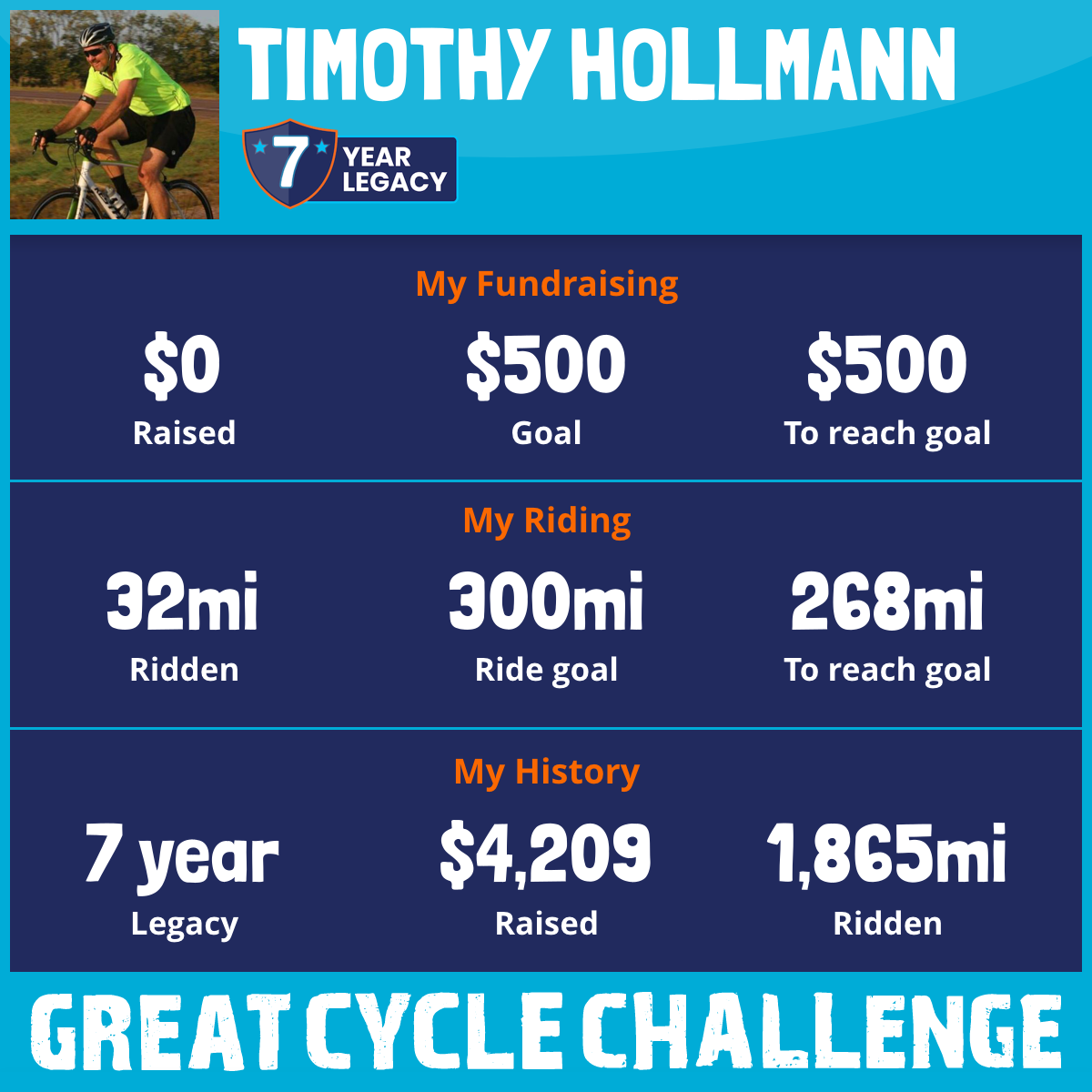 I am riding 300 mi in memory of Clayton Kotab. Please sponsor me and support my challenge to fight kids' cancer and save little lives.