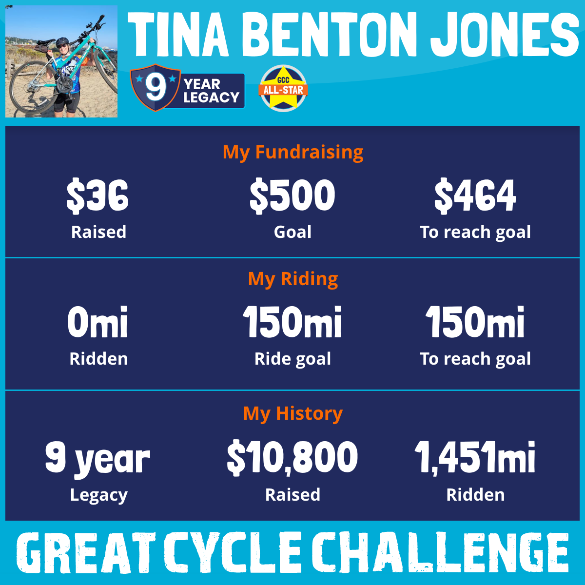 I am riding 150 mi in memory of Jackie Chamblin. Please sponsor me and support my challenge to fight kids' cancer and save little lives.