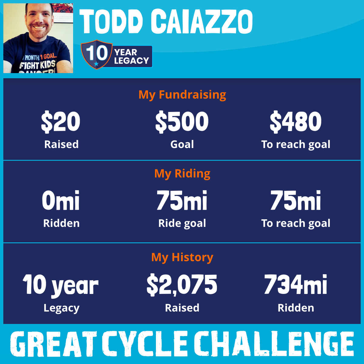 I am riding 75 mi to fight kids' cancer and save little lives. Please sponsor me to support my challenge!
