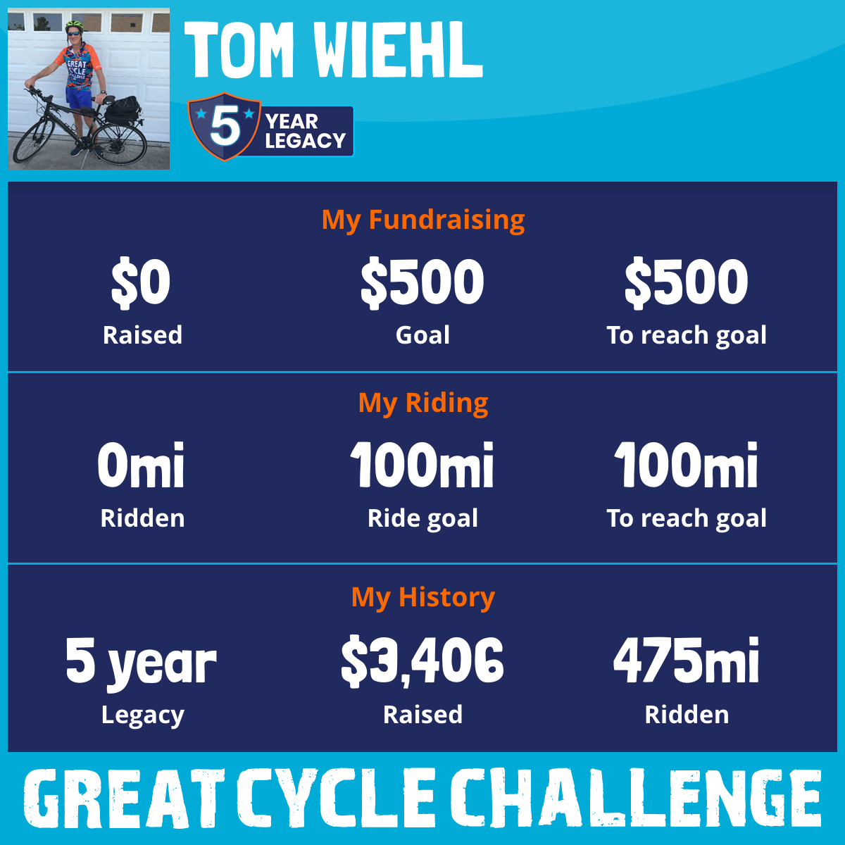 166 mi Ridden$1,051 Raised2021