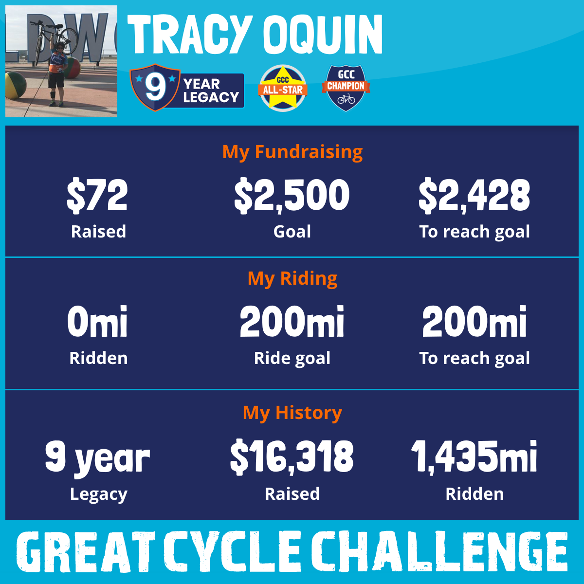222 mi Ridden$1,892 Raised2018