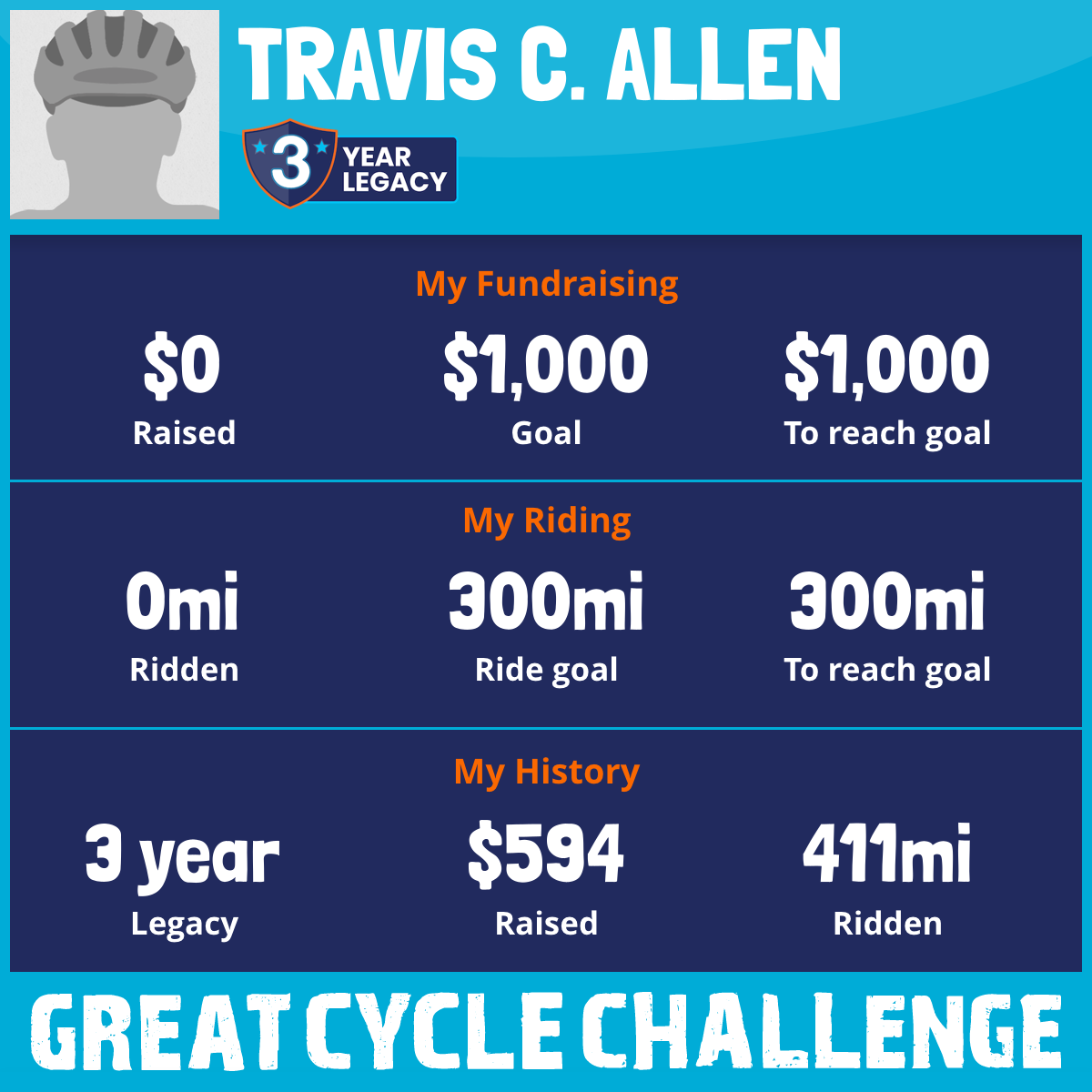 I am riding 300 mi for My father. Please sponsor me and support my challenge to fight kids' cancer and save little lives.