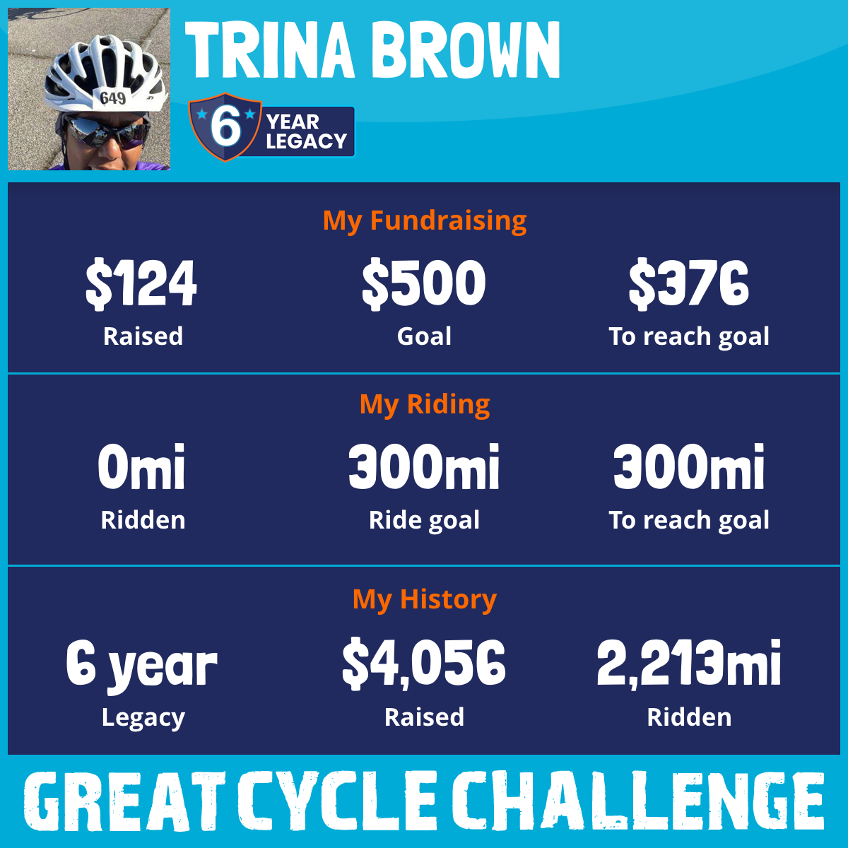 302 mi Ridden$1,024 Raised2020