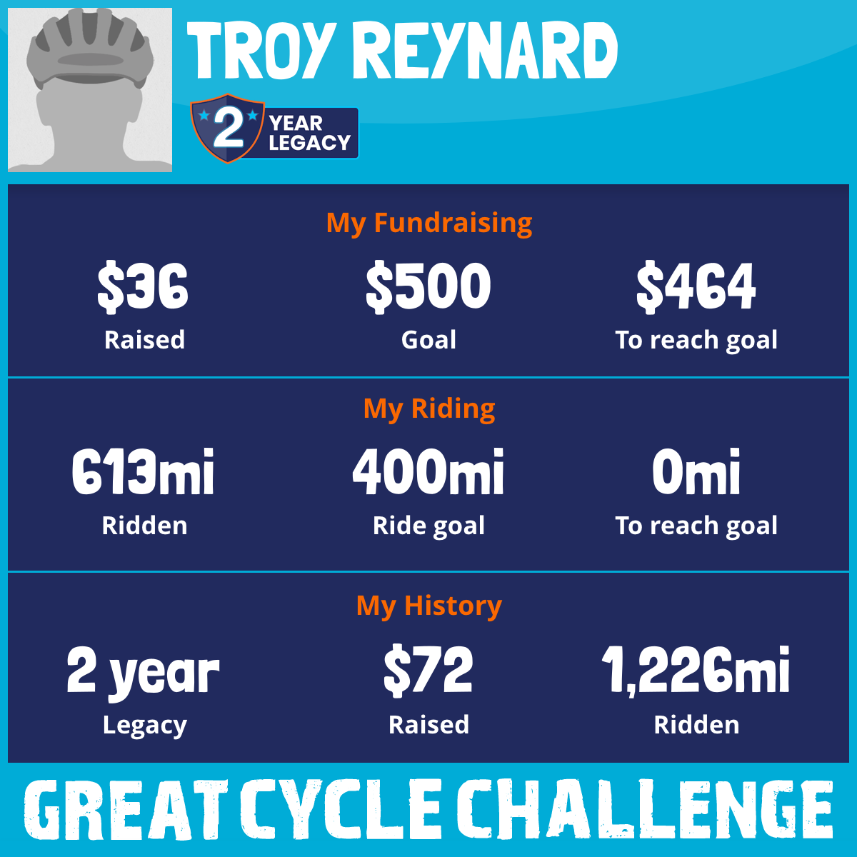 I am riding 400 mi in memory of my dad, Ron. Please sponsor me and support my challenge to fight kids' cancer and save little lives.