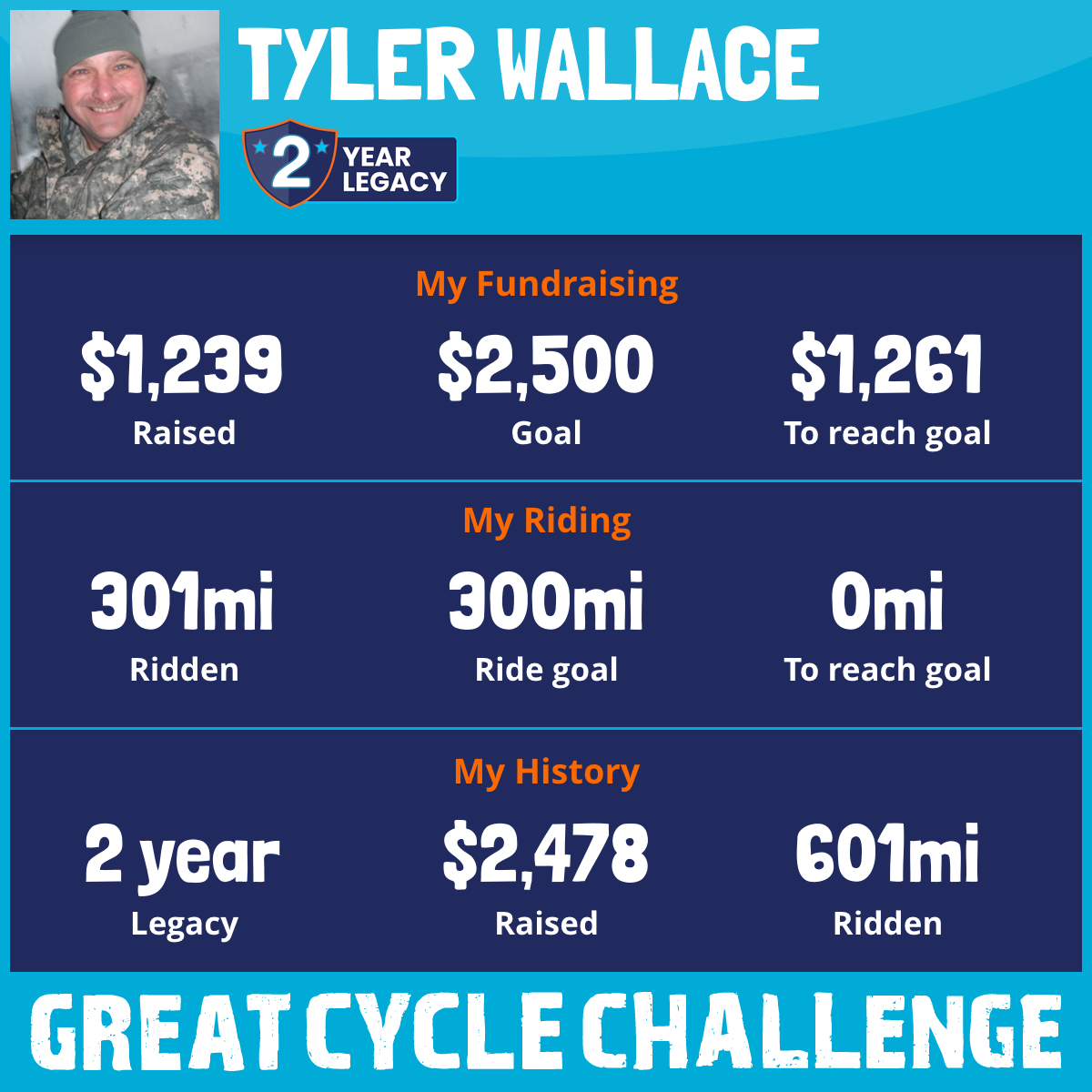 301 mi Ridden$1,239 Raised2026