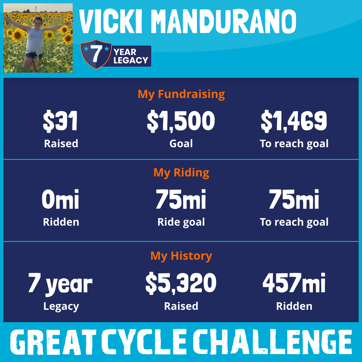 I am riding 75 mi for Patti Rassmussen & Libby. Please sponsor me and support my challenge to fight kids' cancer and save little lives.