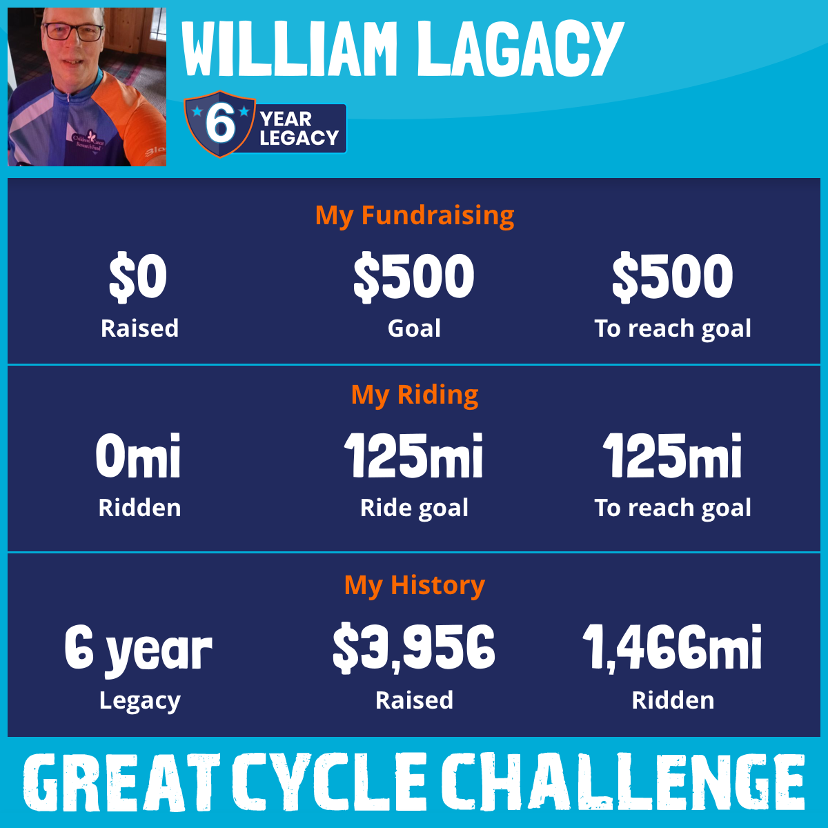 So I am raising funds through my challenge to help these kids and support Children's Cancer Research Fund to allow them to continue their work to develop lifesaving treatments and find a cure for childhood cancer.