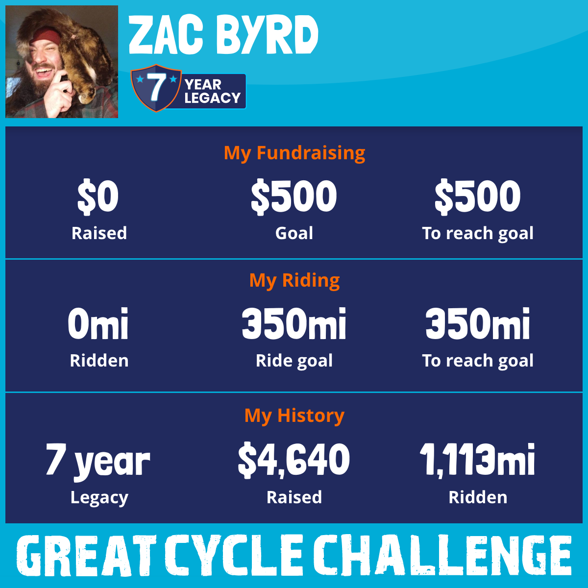 80 mi Ridden$1,100 Raised2020