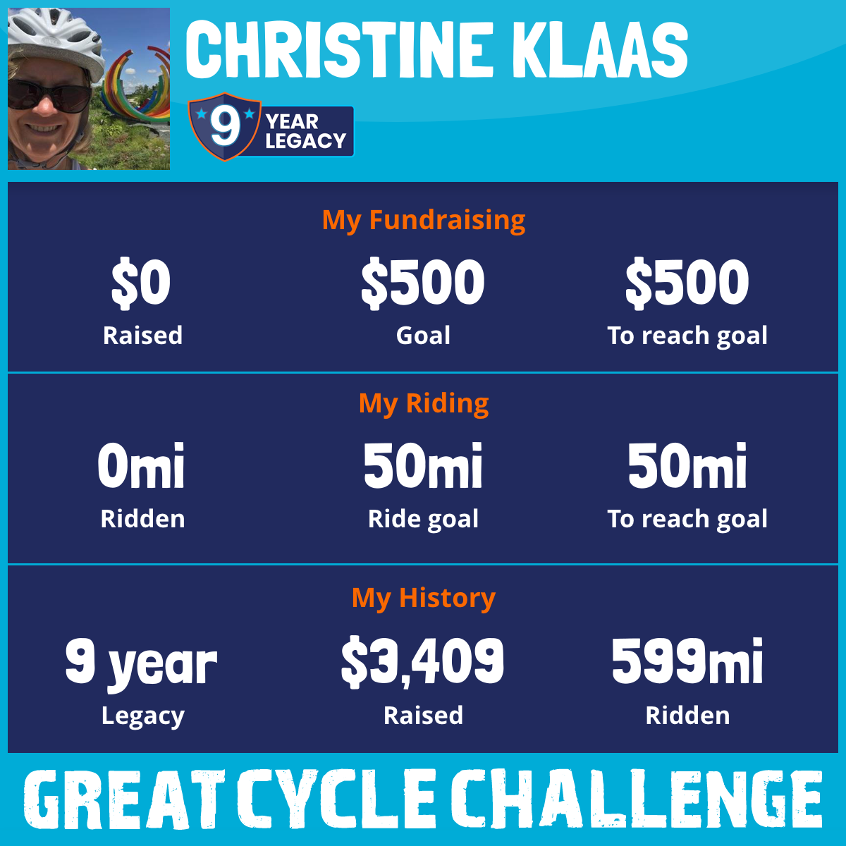 I am riding 50 mi to fight kids' cancer and save little lives. Please sponsor me to support my challenge!