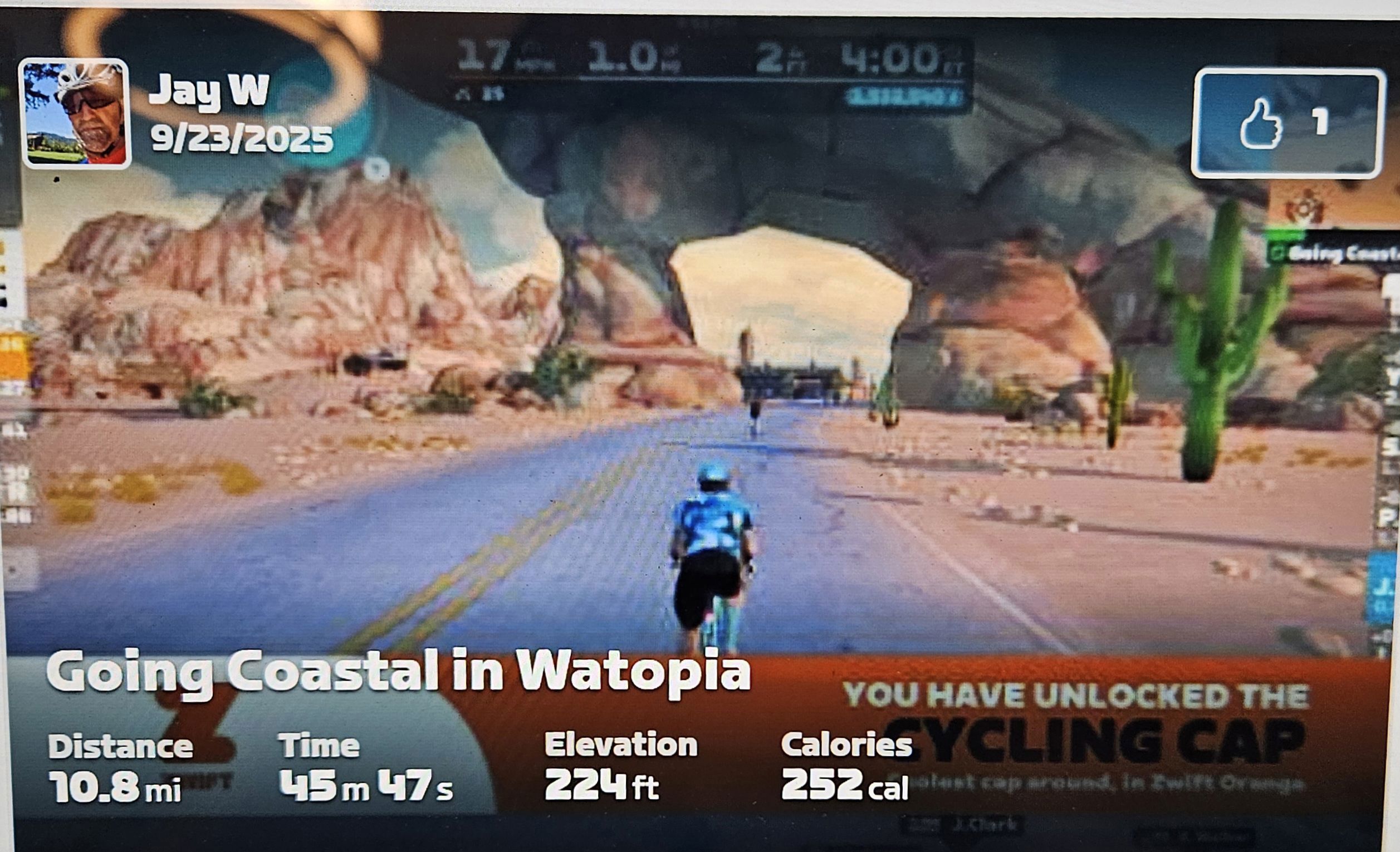 10.8 mi ride - GCC # 9 Zwift Indoor Ride - Tuesday, September 23, 2025