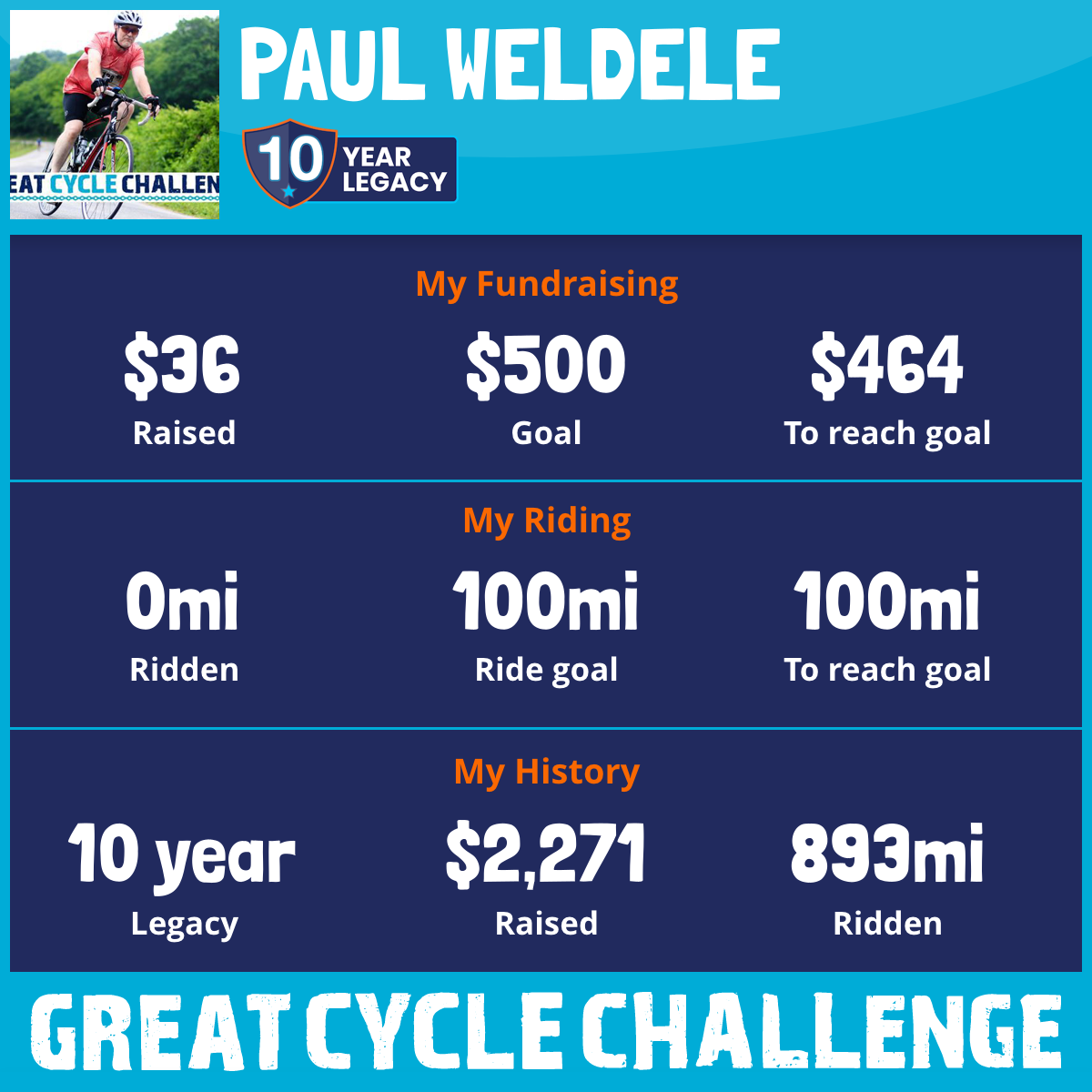 I am riding 100 mi for Michele McWherter-Weldele. Please sponsor me and support my challenge to fight kids' cancer and save little lives.